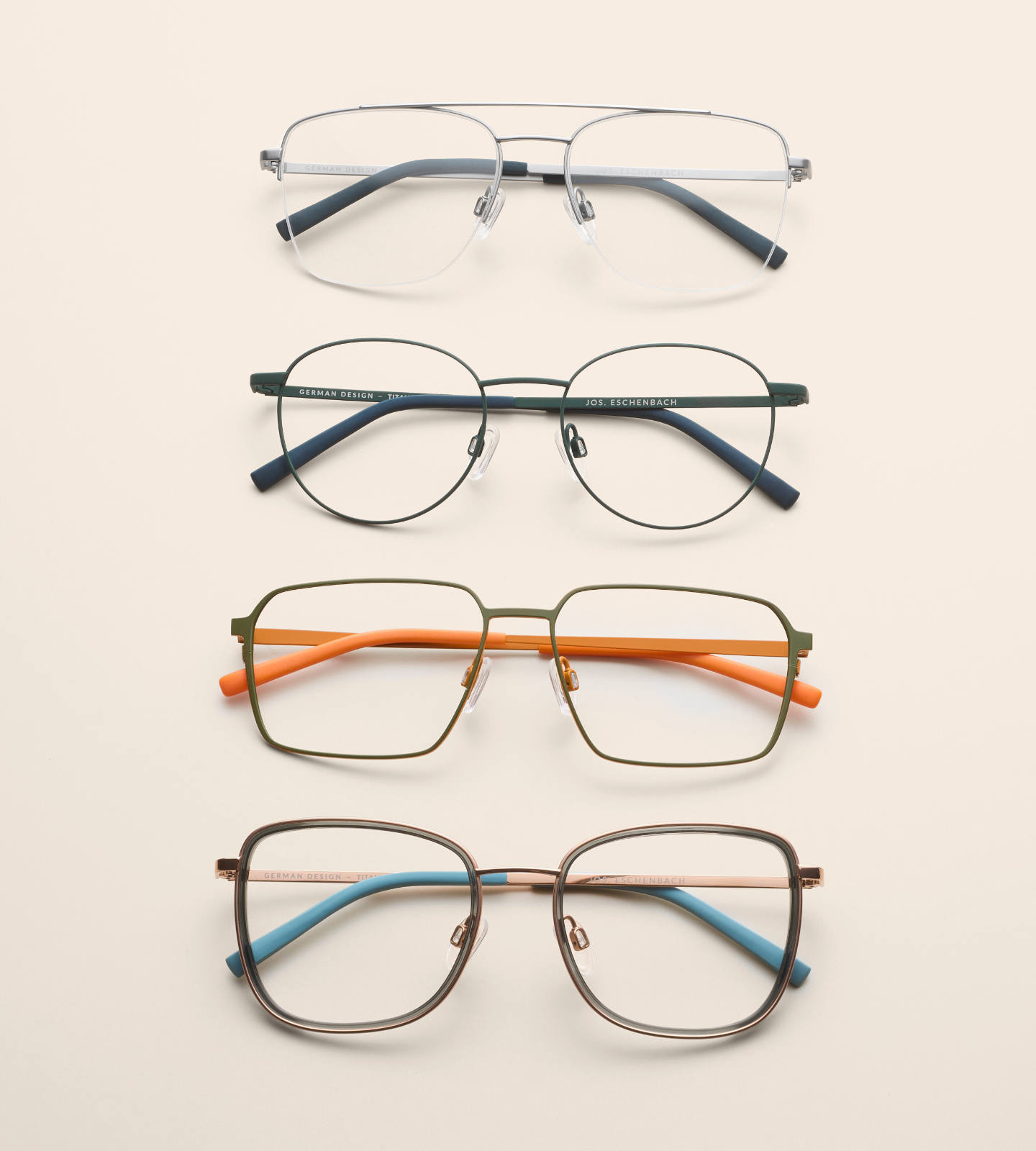 In nordisch-dezenter Farbgebung und geprägt von natürlichen, erdigen Tönen erscheinen die Brillenfassungen von Jos. Eschenbach besonders edel und hochwertig. Einen herausragend hohen Tragekomfort schafft dabei besonders dünn gearbeitetes Beta-Titan. Es bietet gleichzeitig eine hohe Festigkeit und auch federnde Eigenschaften der Brillengestelle.